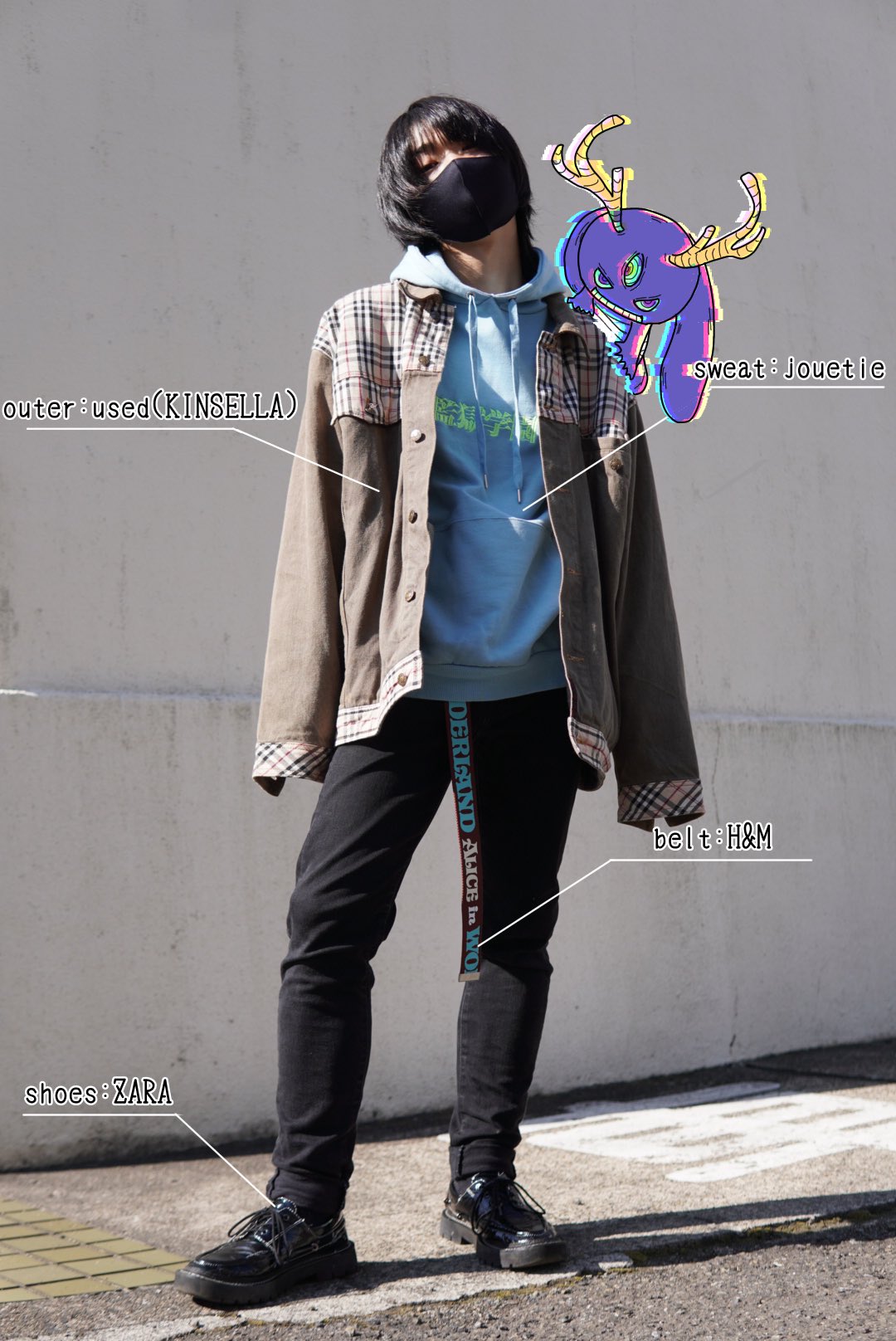 今更くん 500日後にブランドを立ち上げる今更くん 今日の今更 44日目 未来が未えない オーバーサイズジャケットの コーデ 古着 古着コーデ コーデ 春服 ウルフカット メンズウルフ ファッション イラスト Jouetie 原宿 原宿系 フォローした