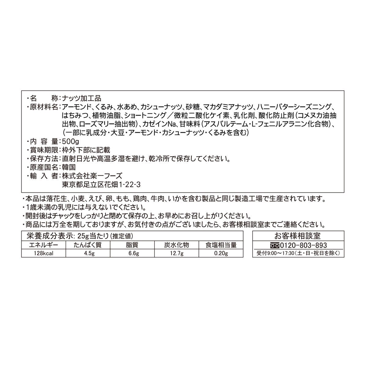 原材料:マカダミアナッツ、砂糖、はちみつ、食塩 内容量:680g 賞味期限:購入日より6ヶ月先まで 保存方法:直射日光や高温多湿を避け、涼しい場所で保存してください。 原産